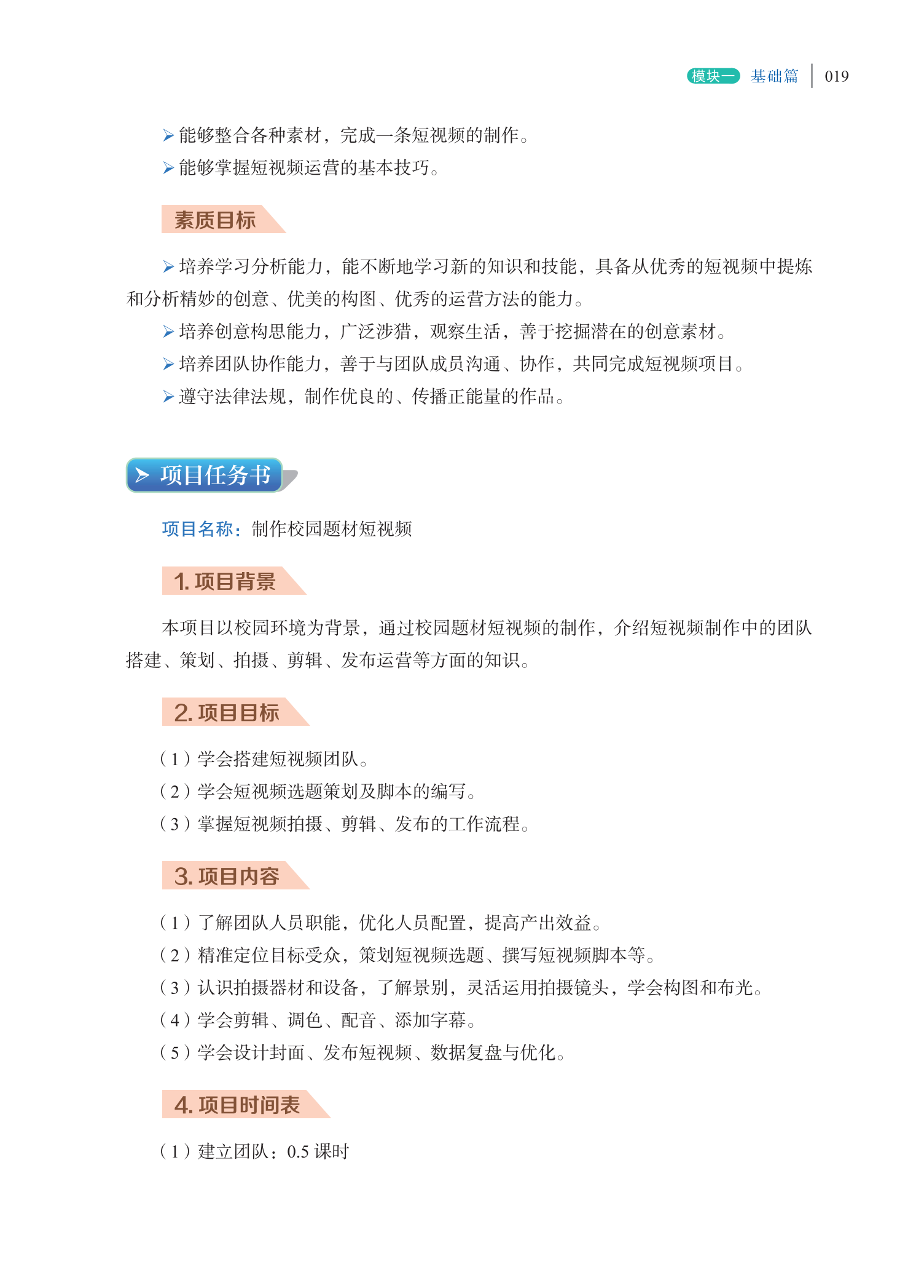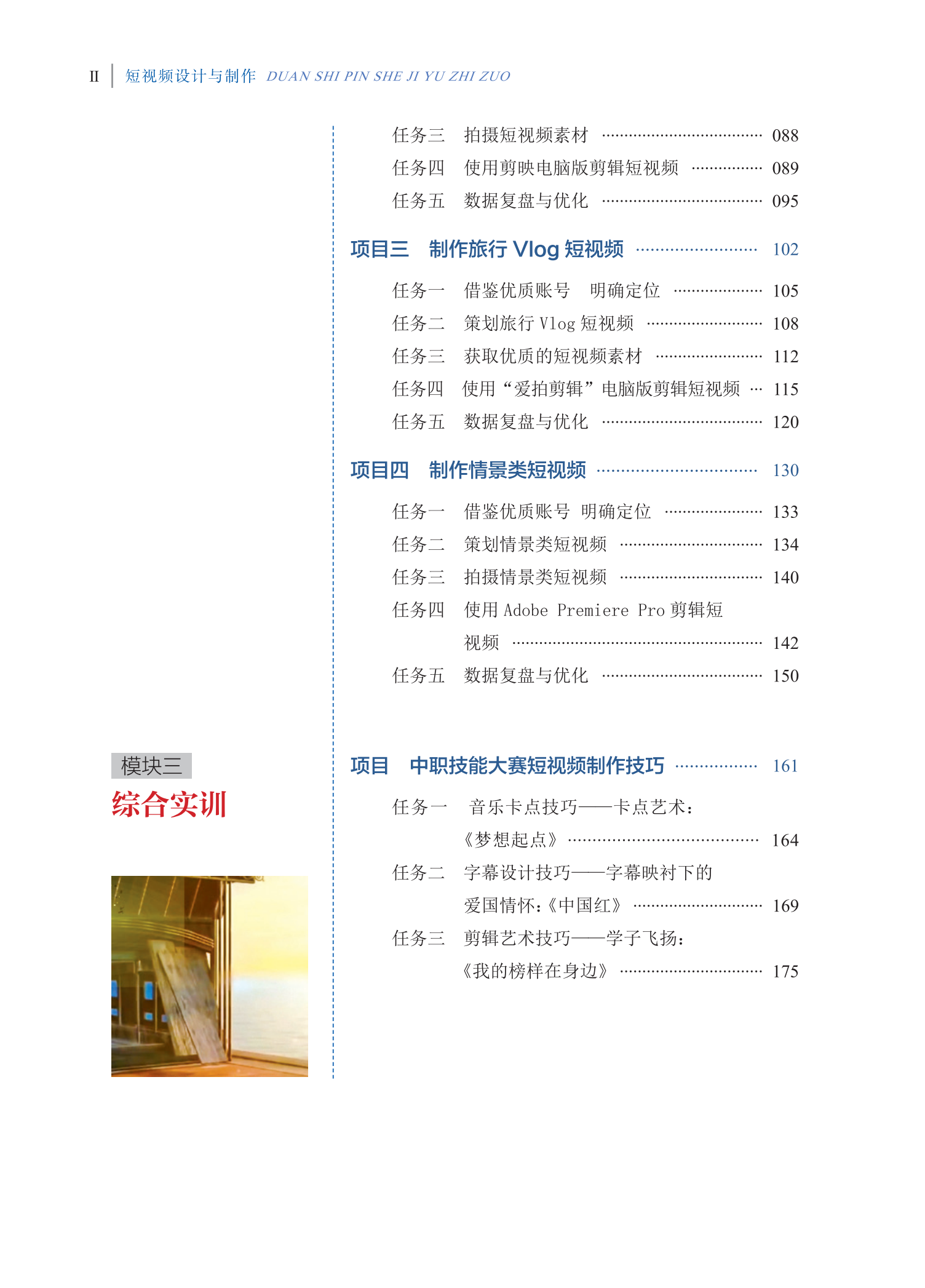 综合实训篇:依托技能大赛赛项要求,融入特效包装、节奏控制、视觉创新等高阶技能,通过综合案例提升整体创作与设计水平。