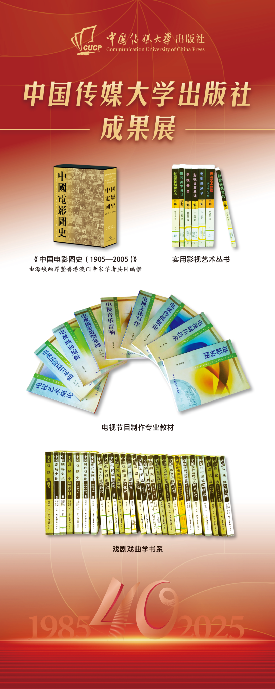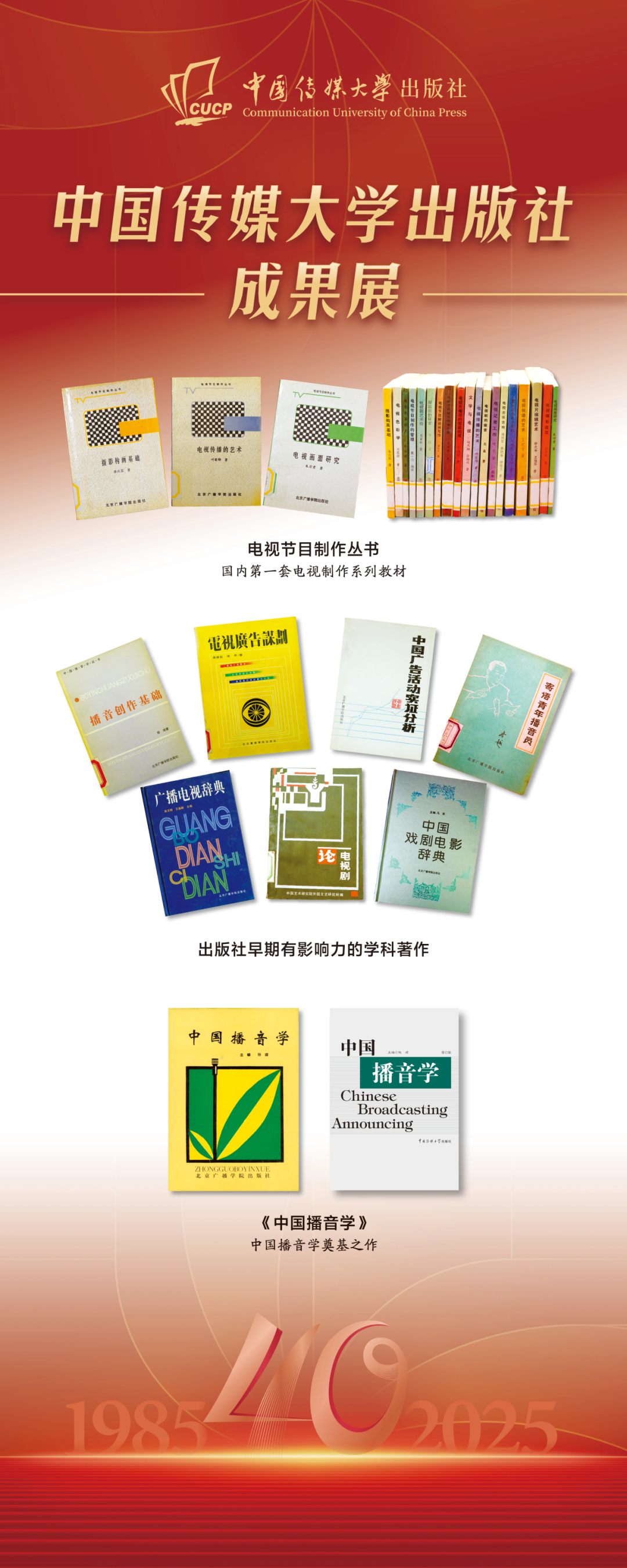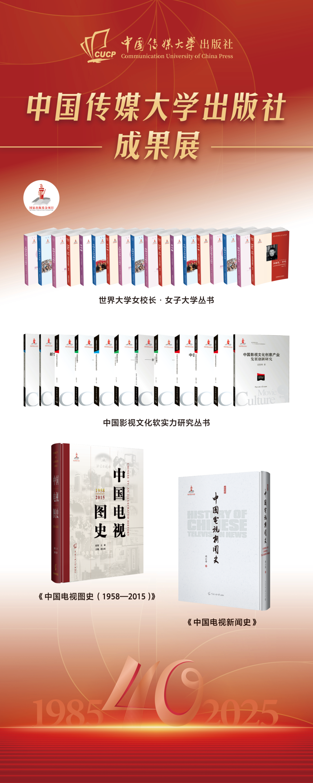 中国传媒大学出版社成果展在本次会议上同步展出。该成果展重点呈现了我社自建社以来的核心出版成果,涵盖图书、音像制品、学术期刊及融合出版物等品类,系统梳理了我社在推动学术传播与文化传承中所积淀的出版脉络,受到与会领导与专家的广泛关注与好评,彰显了我社长期以来坚守品质、深耕内容的出版传统与时代贡献。