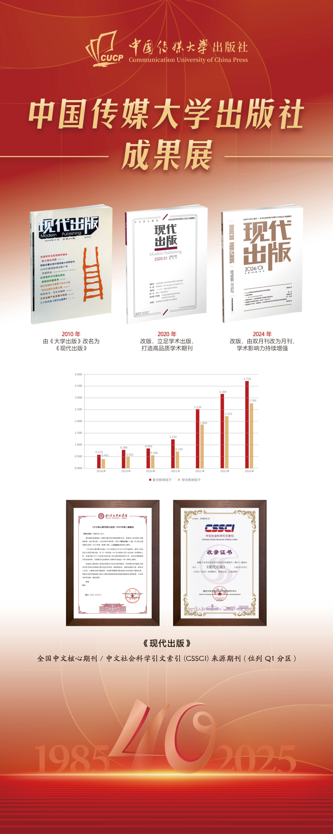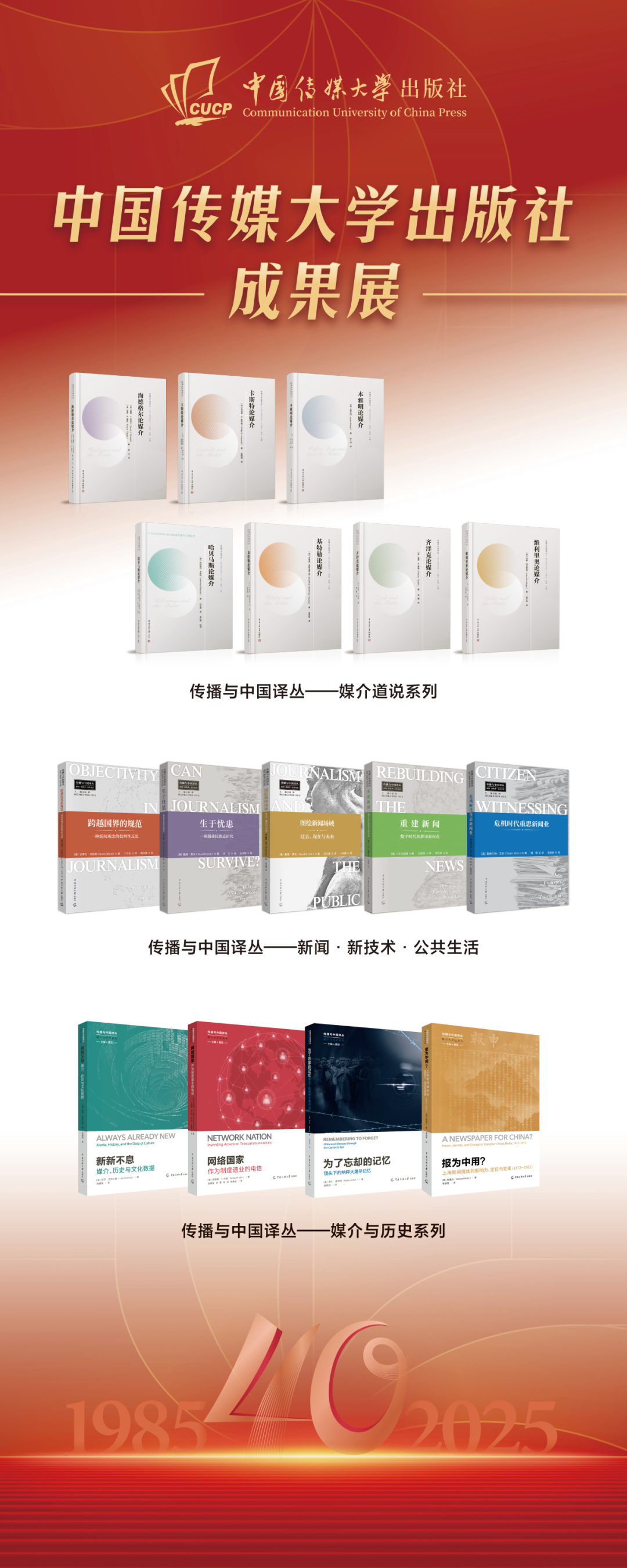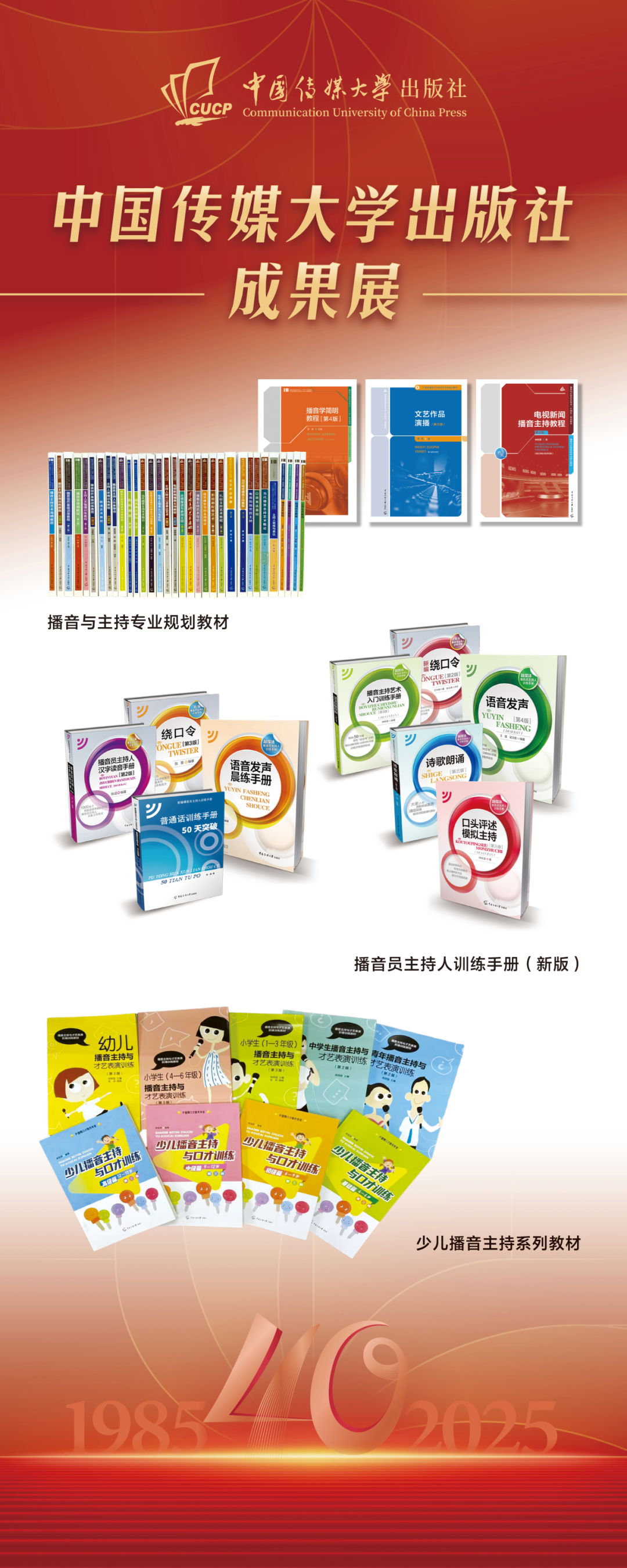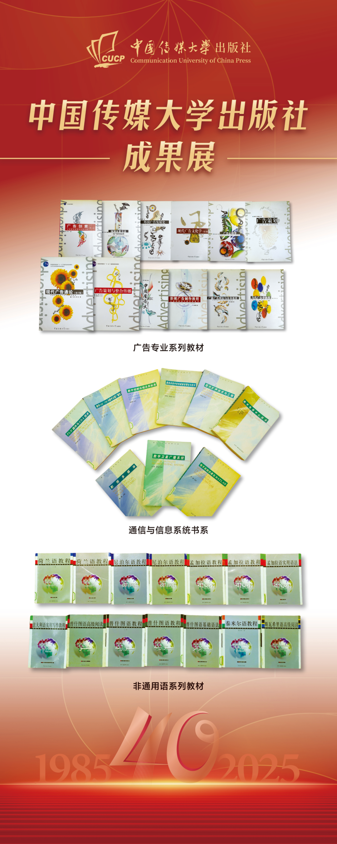 中国传媒大学出版社成果展在本次会议上同步展出。该成果展重点呈现了我社自建社以来的核心出版成果,涵盖图书、音像制品、学术期刊及融合出版物等品类,系统梳理了我社在推动学术传播与文化传承中所积淀的出版脉络,受到与会领导与专家的广泛关注与好评,彰显了我社长期以来坚守品质、深耕内容的出版传统与时代贡献。