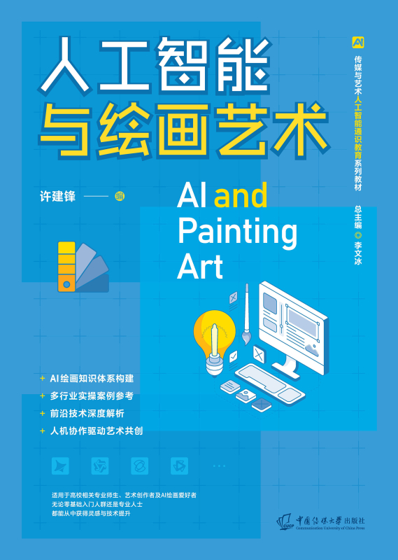 本教材全面梳理人工智能绘画的发展脉络与技术原理,从基础概论、模型分类到文生图、图像编辑与图像控制,层层递进,构建完整的人工智能绘画知识体系。同时,围绕视频生成、数字人制作与智能体艺术设计等前沿方向,深入解析主流工具与应用方法,结合大量多行业的深度实操案例,呈现从创意构思到成品落地的全过程,帮助读者掌握工具、拓展想象,在人机协作中开启属于自己的艺术新篇章。