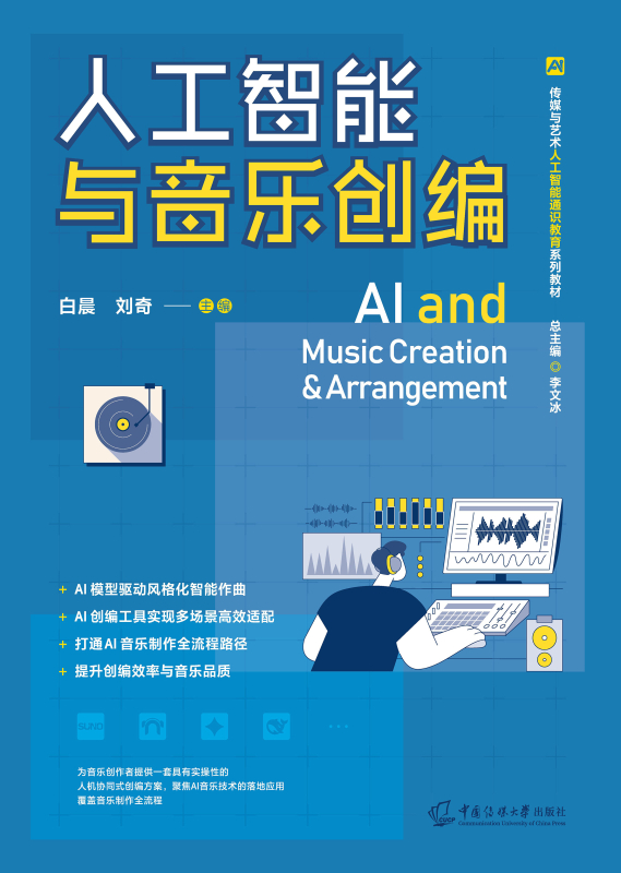 本书系统探讨人工智能与音乐创作的前沿融合,介绍Suno AI、DAW智能辅助功能与智能化插件等工具的应用场景与操作方法,并结合Gemini等多模态大语言模型、LSTM与音乐结构的转译,深度剖析音乐创编过程中各要素的智能生成逻辑与实操策略。本书覆盖提示词适配、和弦应用、织体设计、智能混音及虚拟人声制作等全流程内容,旨在为音乐人提供人机共创的新路径,推动传媒、影视、动画等领域的音乐创作迈向智能化、个性化的新阶段。
